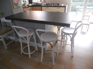 Ecco parte del lavoro portato avanti in queste due settimane gli sgabelli per la penisola,eccoli collocati al loro posto,